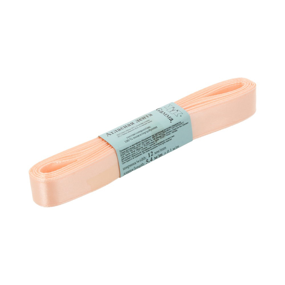 Лента атласная 12 мм ( 1/2 ") "Gamma" ФАСОВКА 5.4 м №007 персиковый